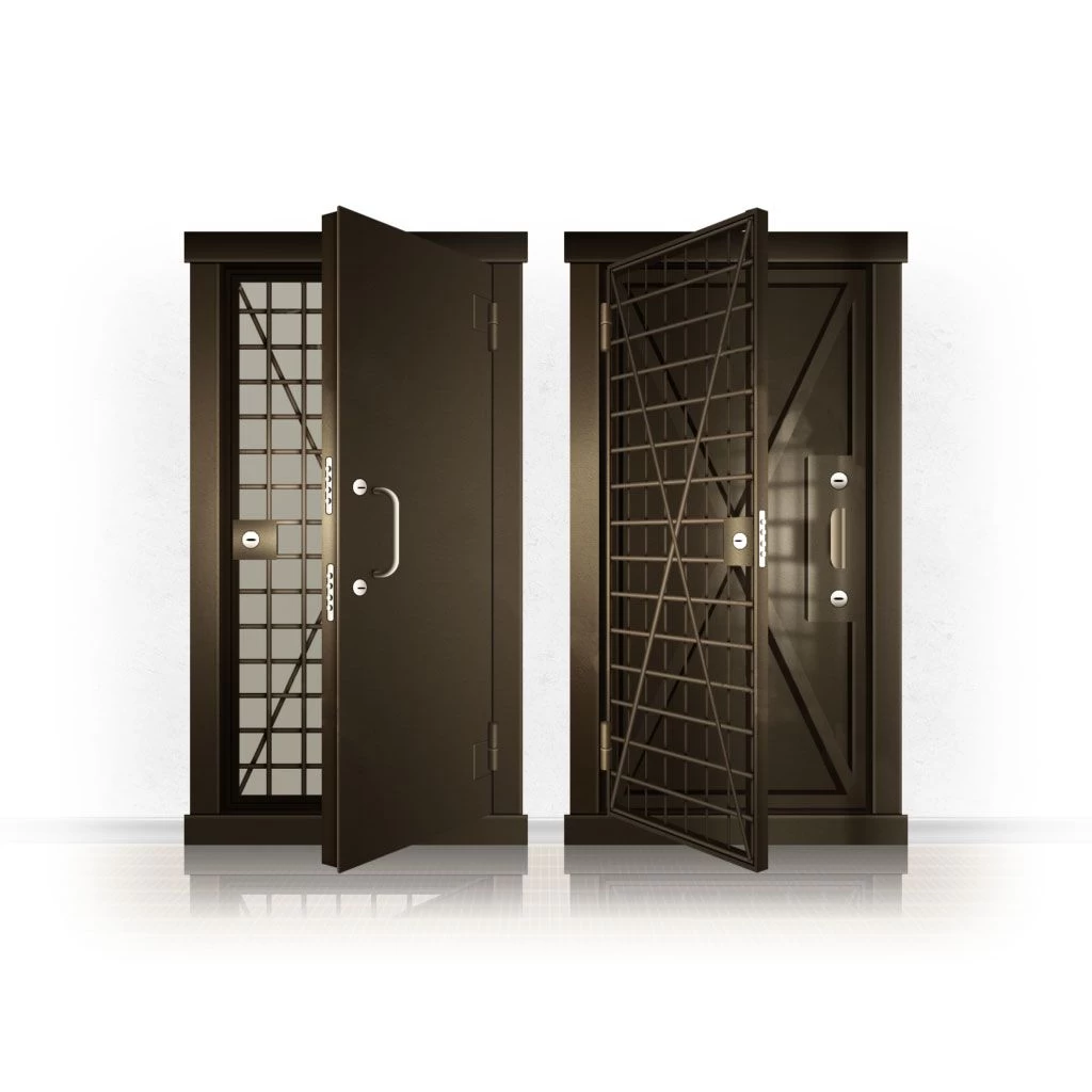 Металлические двери КХО и КХН представляют собой входные блоки, обладающие высоким уровнем взломостойкости и состоят из трех основных элементов: усиленного каркаса, сплошного металлического полотна и решетчатой двери. Дверной блок изготавливается из стального уголка 100*100 мм. Места крепления блока к стене цементируются и закрываются стальными наличниками шириной 40 мм. Крепеж заходит вглубь стены на 80 мм. В конструкции внешней створки монтируются ребра жесткости, для обшивки используется сталь толщиной не менее 3 мм. Внутренняя решетка изготавливается из прутка диаметром 16 мм. Размер ячеек решетки должен составлять не более 15 на 15 см. В точках пересечения прутья надежно приваривают друг к другу. В КХО и КХН необходимо поддерживать определенную температуру и влажность. Для этого внутреннее пространство глухой двери заполняется теплоизоляционным материалом, а по периметру двери приклеивается уплотнитель. Такие двери оборудуются замками с повышенным уровнем взломостойкости. Специализированные двери КХО и КХН в Кеме могут быть оснащены сигнализацией, в конструкции могут быть проушины для навесного замка и элементами для опечатывания. Если идет речь о двери в комнату хранения оружия, в створке оборудуется окно для выдачи оружия и спец. средств, которое накрывается стальной дверцей.