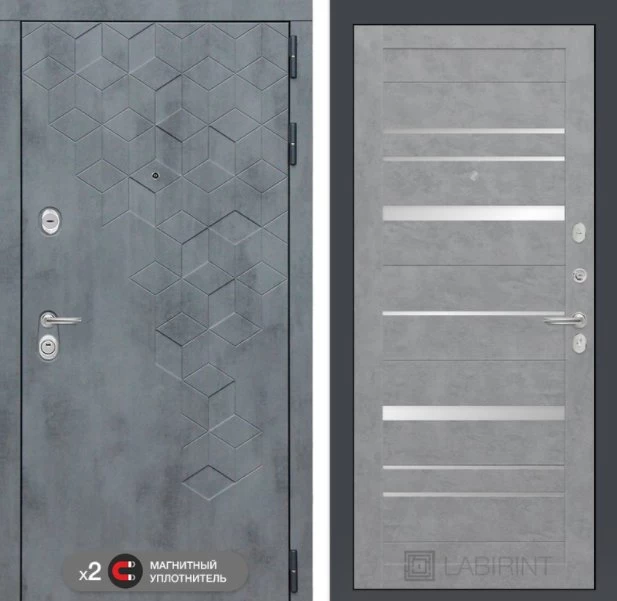 Дизайнерская входная Дверь Бетон класса Люкс с несколькими листами стали, звукоизоляцией и теплоизоляцией. Утепленный короб и полотно защитят от сквозняков и шумов. Модель не только надежная, комфортная, защищенная и высочайшего качества, но и очень красивая! Будет отлично сочетаться с интерьером дома, квартиры или офиса. Сейчас действует выгодное предложение по цене: 53 763 руб.